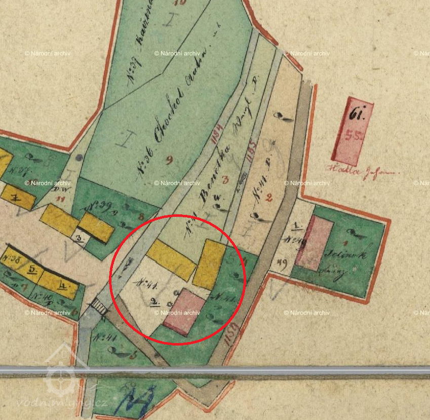 14.7.1829 odstoupil mlýn v ceně 840 zl. nezletilému synu Václavovi, zastoupenému Františkem Kačenou