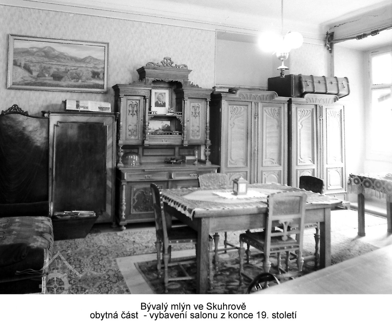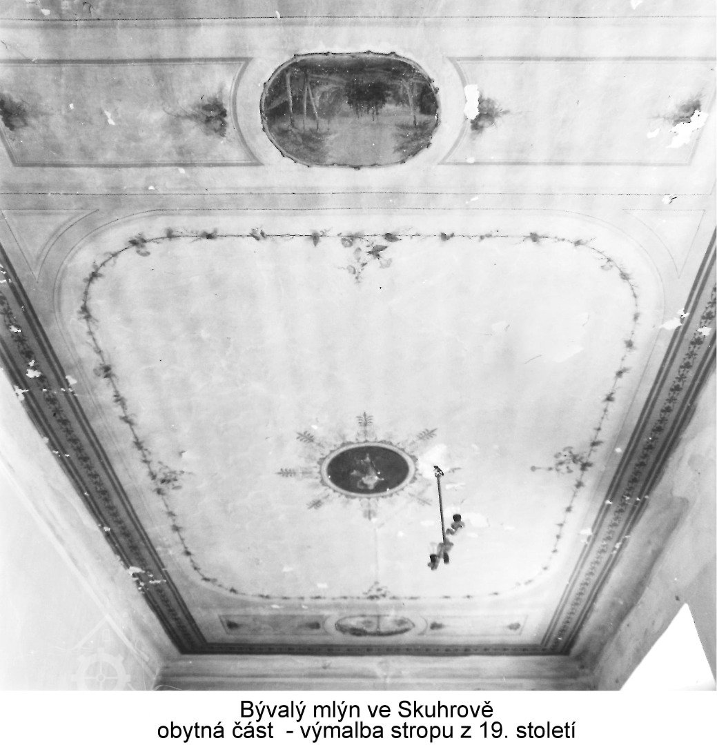 V roce 1729 koupil ves Skuhrov rytíř Jan František Turba ( 1685 – 1760 ), doktor práv, dvorní rada, rada komorního soudu a české dvorské kanceláře. Horní mlýn v té době držel Jan Klaban. Před objektem mlýna stojí kamenná socha sv. Jana Nepomuckého, kterou do Skuhrova opatřil rytíř Turba v roce 1730. Součástí mlýna byl malý třípodlažní zámeček, který 1823 i s mlýnem vyhořel. Vzápětí byl mlýn i zámeček obnoven, ale již jen o dvou podlažích. V 19. století byl zámeček upraven na byty majitele a zaměstnanců. Stěny a stropy obytných místností v 1. patře byly vymalovány v romantickém dekorativním stylu biedermayeru, ozdobné medailony s květinovými motivy údajně maloval Josef Navrátil. Výmalba se zachovala až do 70. let 20. století, kdy byly prostory změněny na výrobu kožedělného zboží podniku Kozak Dolní Beřkovice. Malby byly seškrábány nebo zabíleny.