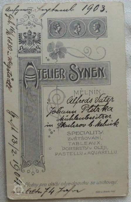 V roce 1930 byl majitelem mlýna František Vaina, který byl manželem dcery J. Plicky Emilie. V manželství se narodily již dříve dvě děti František a Marie. František Vaina se stal právníkem, Marie vystudovala obchodní školu , stala se manželkou advokáta Dlabače, jemuž patřila vila Karola na Mělníku.