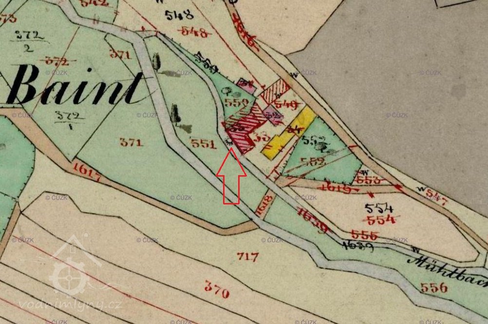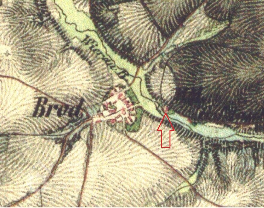 Dle berní ruly z roku 1654 byl mlýn poháněn dvěma vodními koly a byl zde mlynář Jiřík Bittner, který patřil mezi brodské chalupníky, vlastnil 15 strychů polí, 1 potah, 2 jalovice a 4 prasata.