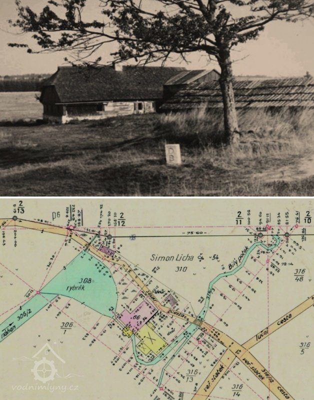 PopisSeznam vodních děl Republiky československé 1930 – Plöšský potok – Pleš 54 – Šimon Licha – mlýn – 1 kolo na svrchní vodu – 0,076-3,53-2,3.