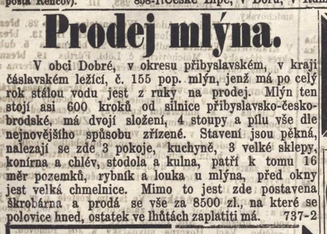1867 nabízen k prodeji za 8500 zl.