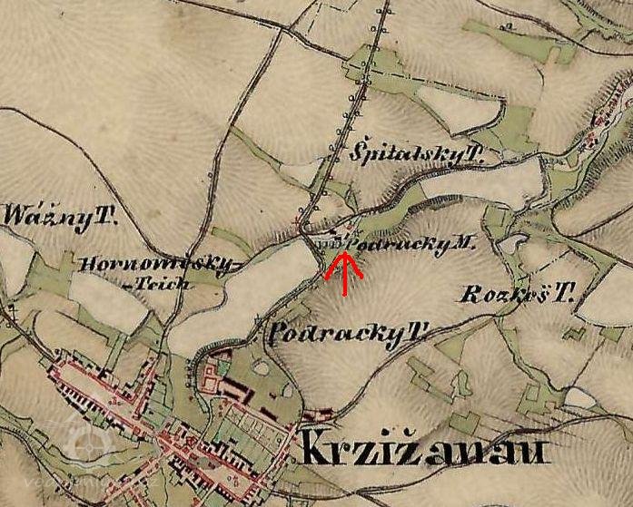 Severovýchodně od centra Křižanova pod hrází Podhradského rybníka
