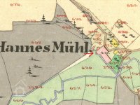 Mlýn s určitostí stál již roku 1756; toto datum bylo uvedeno na kamenném podstavci se sochou Krista u cesty, vedoucí k Hanesovu mlýnu, jako upomínka na neštěstí, které se stalo obyvatelům přilehlého mlýna. Socha byla v r. 1993 odcizena.