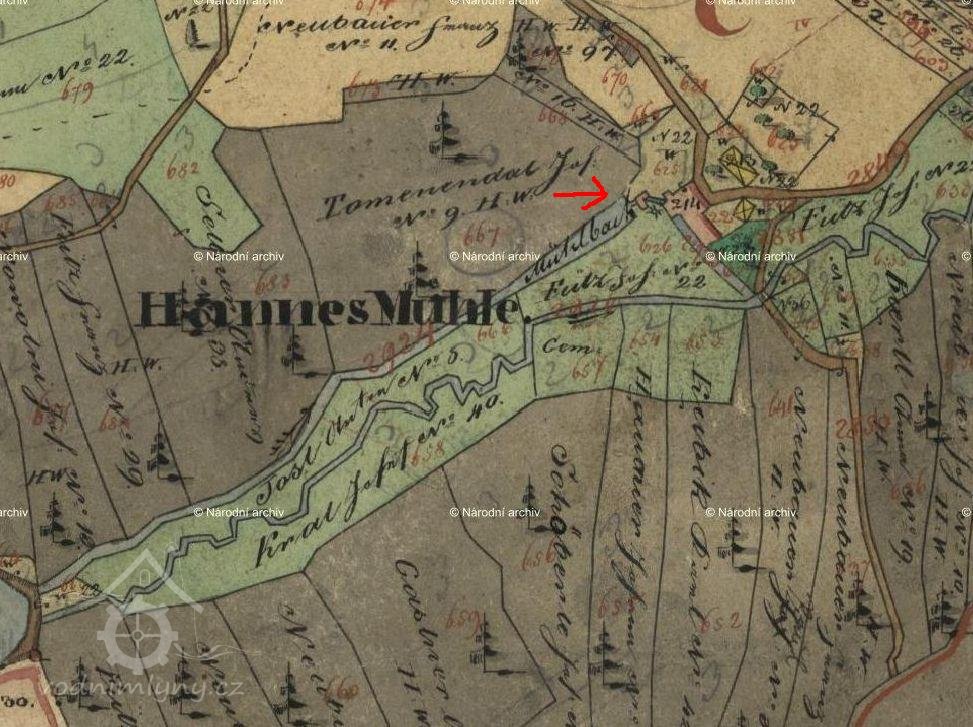 Mlýn je zakreslen na I. a II. vojenském mapování a na císařském otisku z roku 1838. V roce 1838 byl majitelem mlýna Johan Fütz.