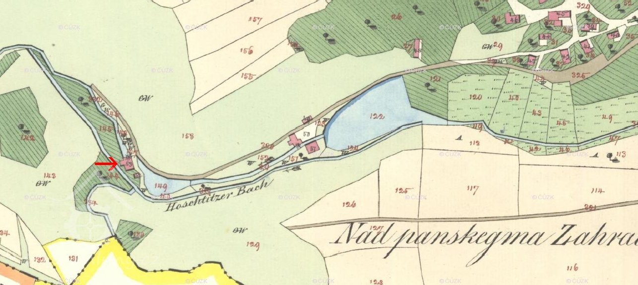 Popis1930: 1 kolo na svrchní vodu, průtok 0,041 m3/s, spád 7 m, výkon 2,5 HP