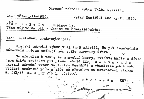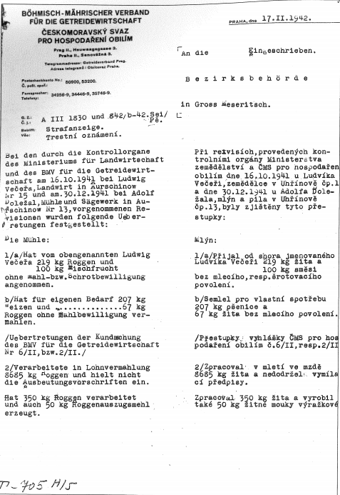 25.3.1942 Adolf Doležal odsouzen za černé mletí k 30 dnům vězení v okresní věznici Velké Meziříčí