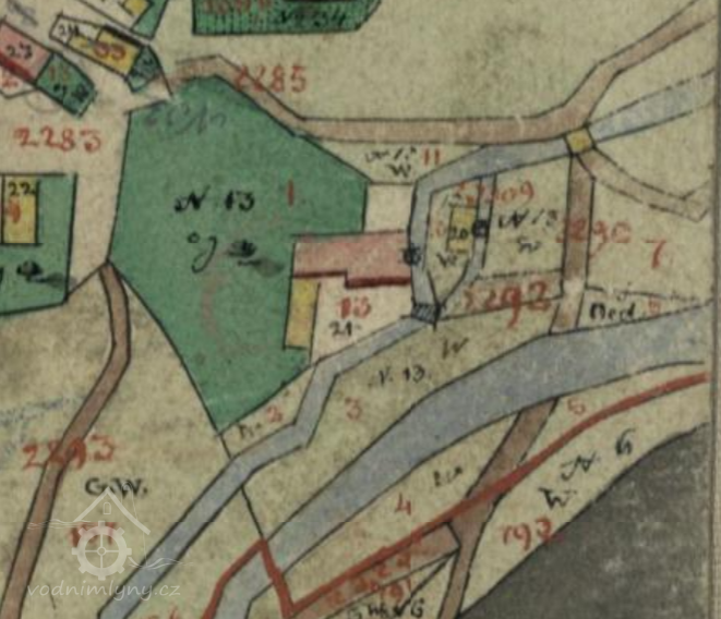 V roce 1907 byl mlýn poháněn čtyřmi koly na horní vodu, z toho 1 kolo bylo pro pohon pily. Voda byla na kola hnána pomocí vantroků. V r. 1907 bylo kolo pro pohon mlýna nahrazeno Francisovou turbínou, pila byla dál poháněna vodním kolem.  Mlynářem byl v té době Adolf Doležal.