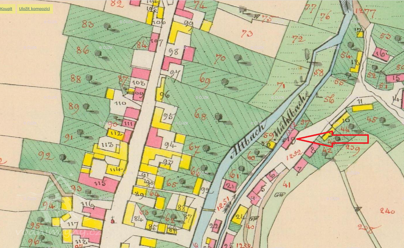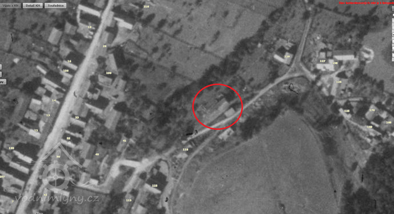 1872 mlynář František Ekert, mlýn o dvojím složení, odhadnut na 6000 zl., dluhy 2000 zl., k mlýnu náleží 14 strychů polí.