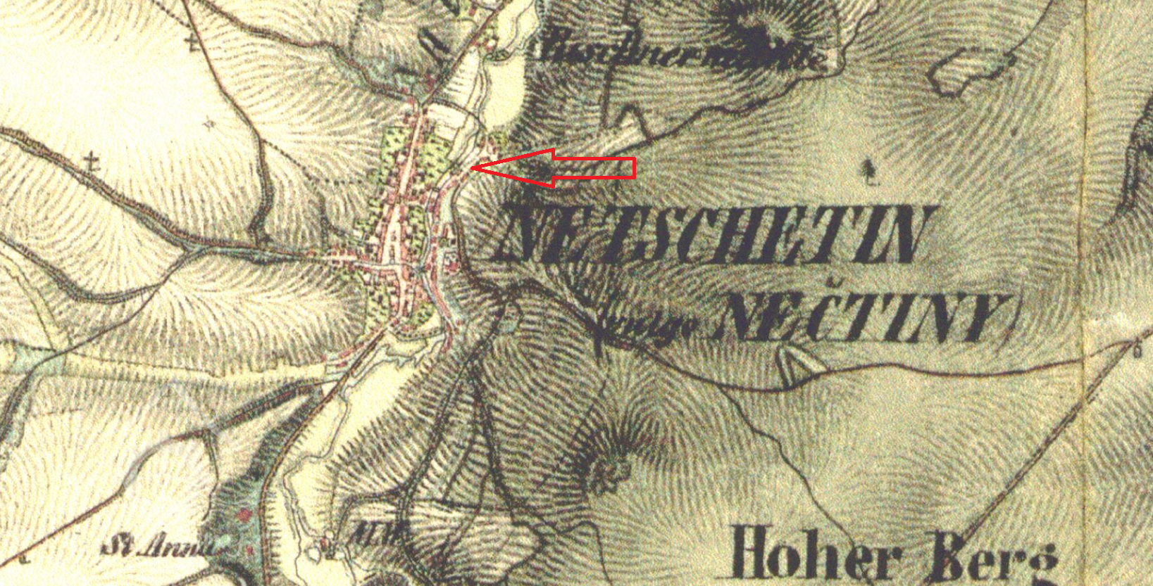 250 m severně od kostela sv. Jakuba Většího v Nečtinách