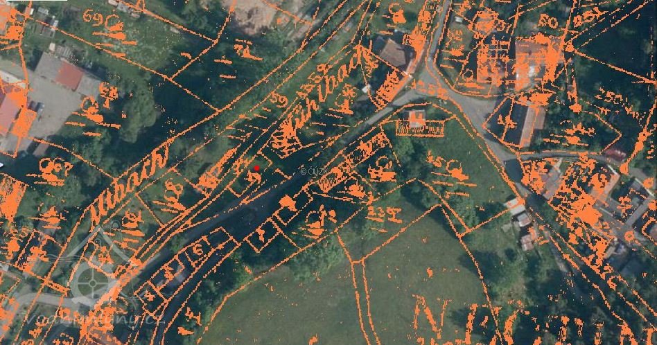 1897 Přepadový jez na Starém potoce, přes celou šířku toku, pravobřežně do vyzděného boku, levobřežně do volného terénu, v koruně 13,68 m dlouhý, v toku 2,10 m široký.