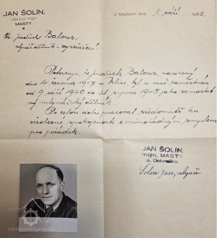 Jan Šolín 1908-1939. Byl vychováván k převzetí mlýna. Dokonce absolvoval potravinářskou školu. Byl zvídavý, chytrý, moderní. Staral se hodně o svou životosprávu, jedl zdrave, ale hodně kouřil. Bohuzel už v mládí nejspíše cítil, že není úplně zdravý. Máma mysli, ze to mohla být roztroušená skleróza, ale těžko teď říci. Měl pokoj, tam kde je teď pracovna dlouho tam jen ležel, babička jako malá sestra mu za úplatky nosila cigarety, nemohl si je odpustit. V tom pokoji nakonec i zemřel.