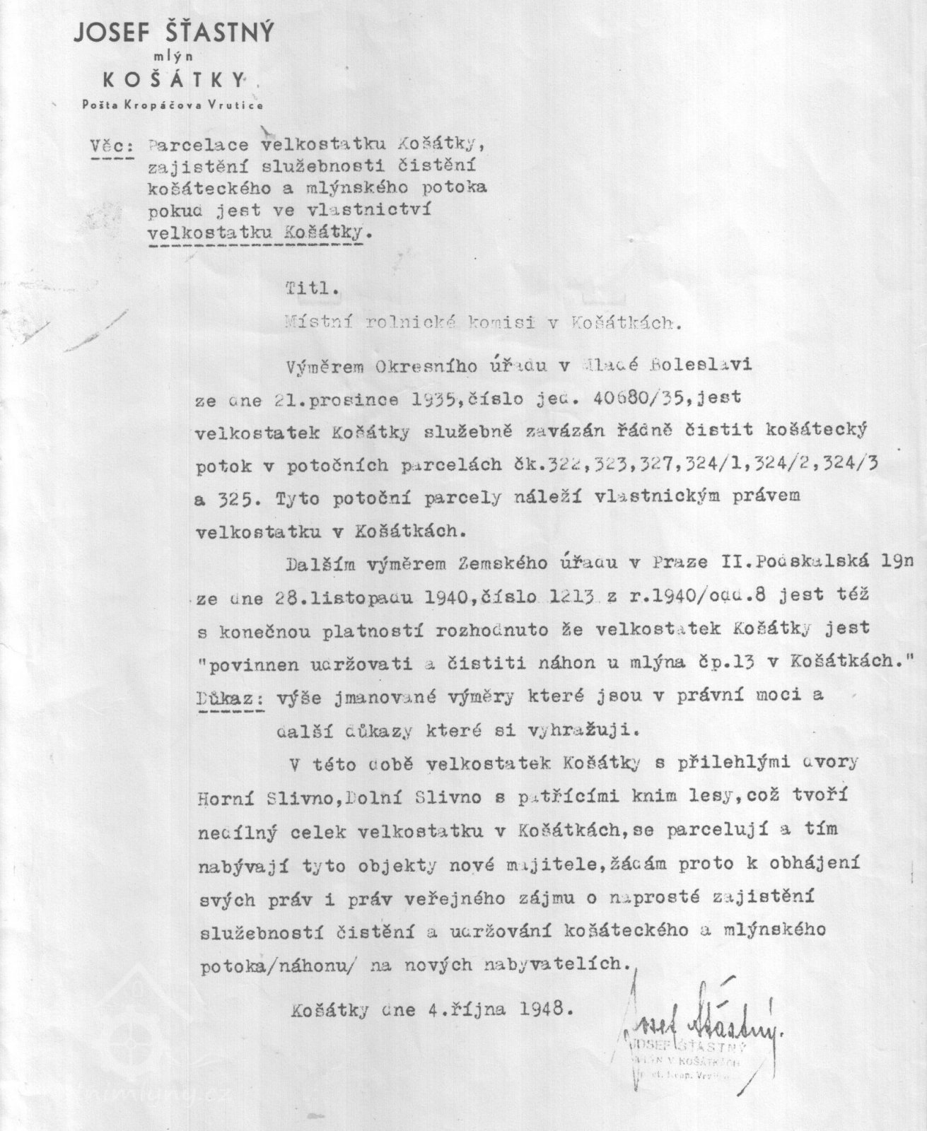 Opis z kroniky obce Košátky – r. 1941 (zapsal kronikář B. Prošek)