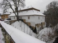 Patrový barokní mlýn na jižní straně od mostu do předhradí.