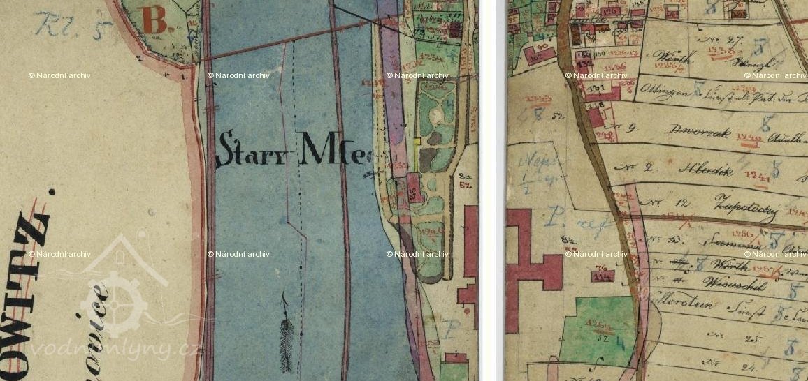 1487 Purkmistr a rada Starého Města pražského povolili mlynáři Lazarovi postavit nový mlýn na pozemku pod Modřany na břehu Vltavy (viz příloha dole)