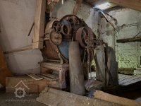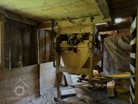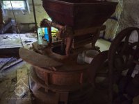 Kamenné složení s násypkou, 08 2025, © Adam Koval, (Prvky na obrázku: kamenné složení (šrotovací, mlecí), zásobník, násypka)