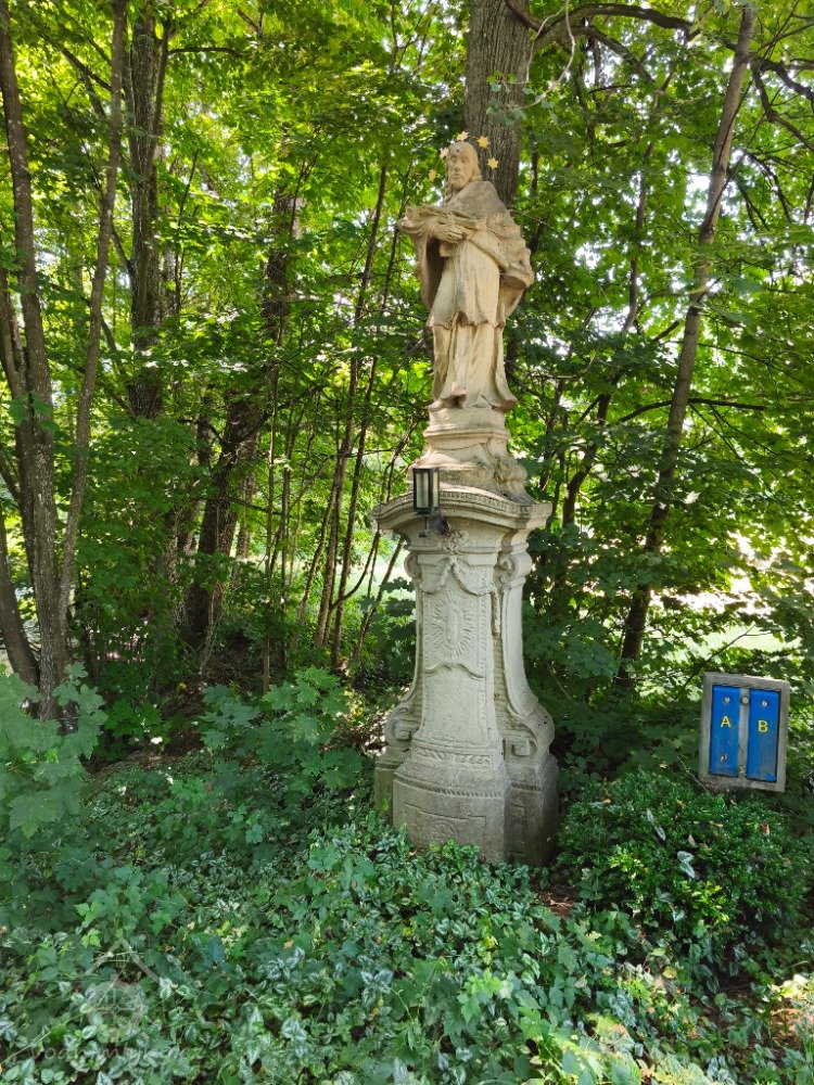 Socha sv. Jana Nepomuckého, 07 2021, © Karel Kučera, (Prvky na obrázku: drobné sakrální památky, umělecké prvky (sochy, malby, reliéfy))