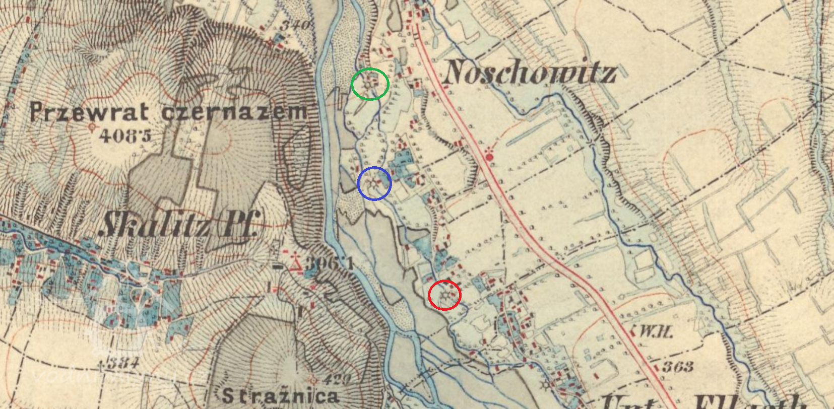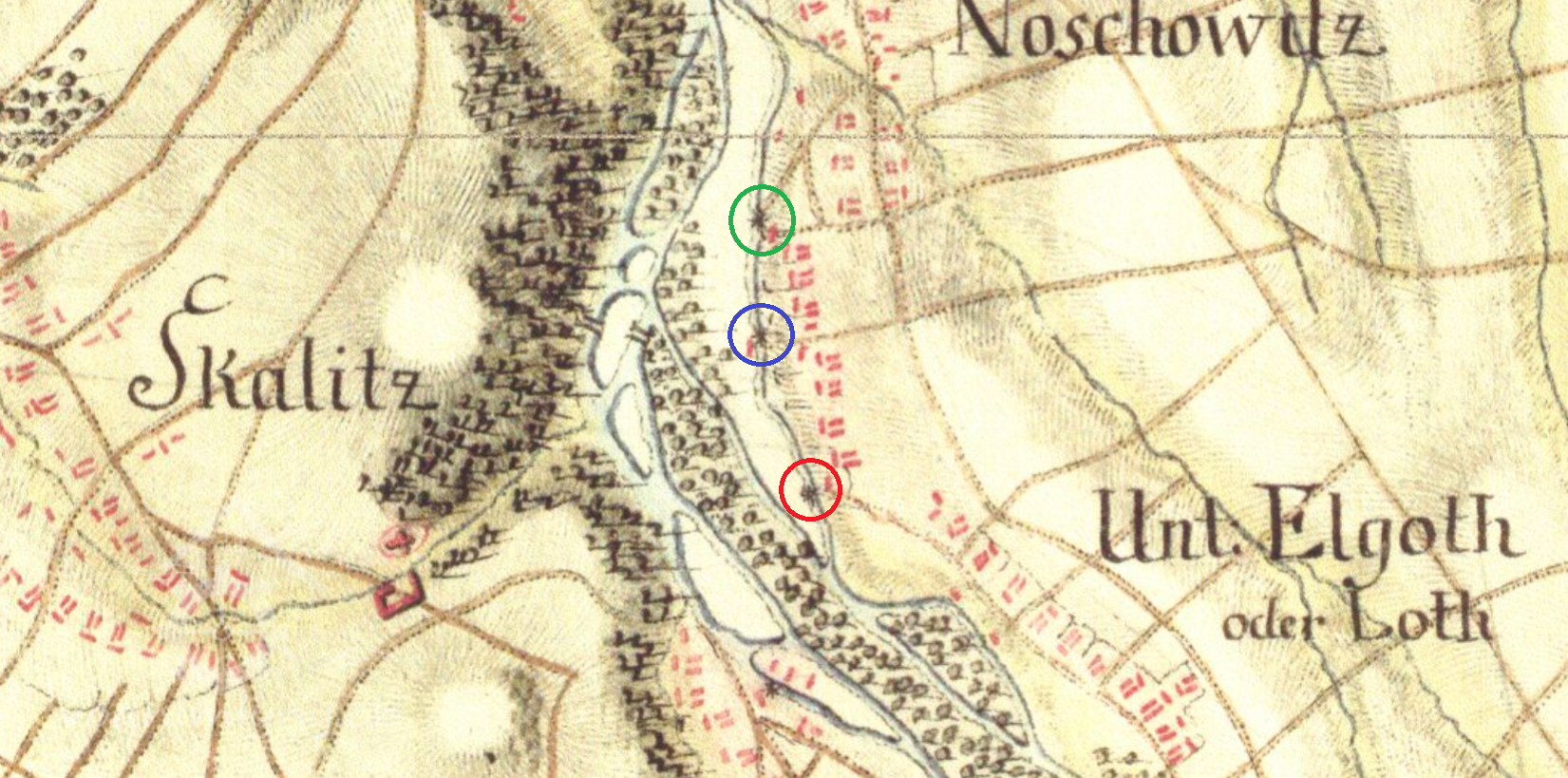 Zaniklý malý mlýnek u fojtství, druhý ze čtveřice nošovických mlýnů.