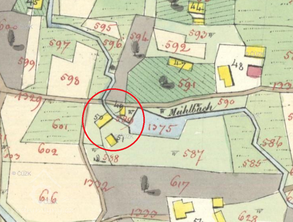 Dnes je bývalým mlýnem dům čp. 37 p. Karla Adámka na parcele č. 50.