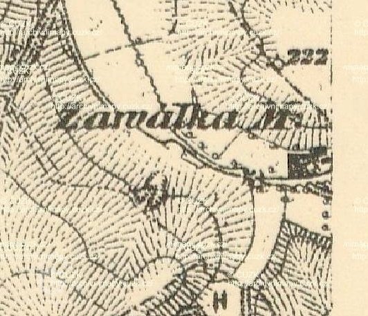 MApová značka umístěná dle Ind. sk a současného katastru. (RŠ)