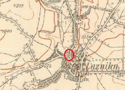 Mlýn uveden již na 1. vojenském mapování. Dnes obytný dům. Existenci připomíná též jméno zastávky "Lazníky, mlýn".