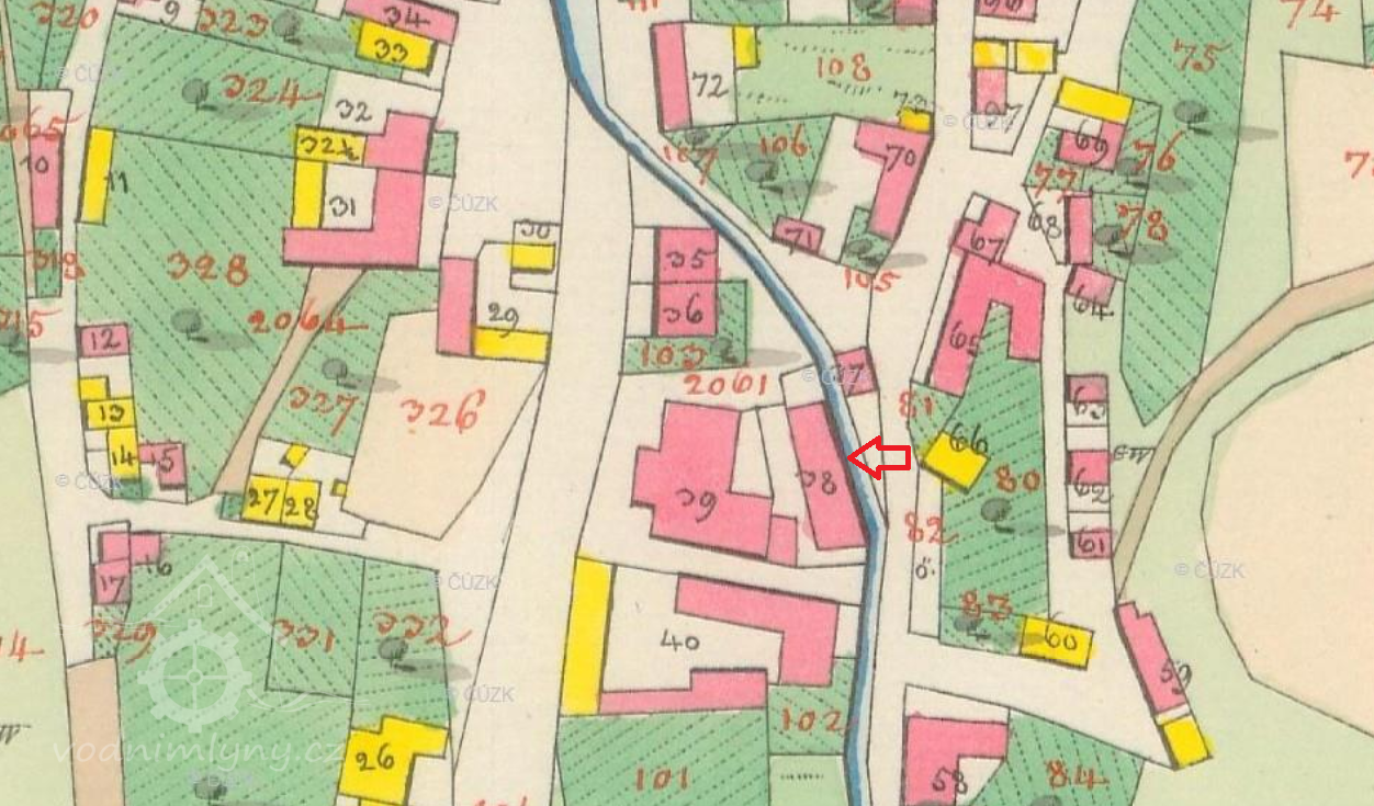 Popis1930: 1 kolo na svrchní vodu, hltnost 0,277 m3/s, spád 5 m, výkon 10,8 HP