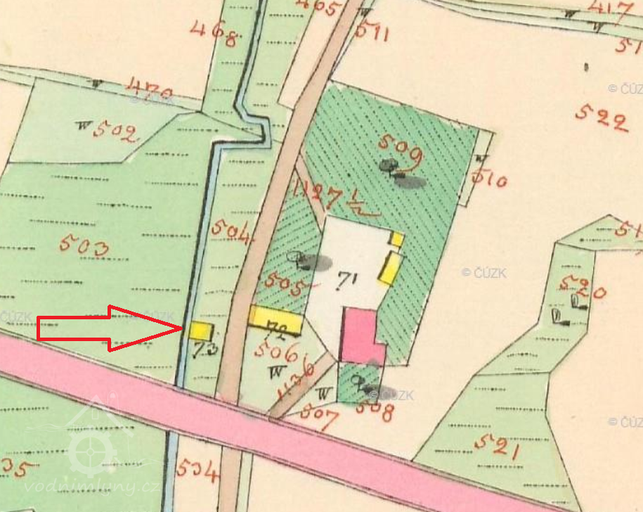 Mlýnek je dnes zaniklý. Stával přibližně na levé straně silnice, naproti čp. 243.