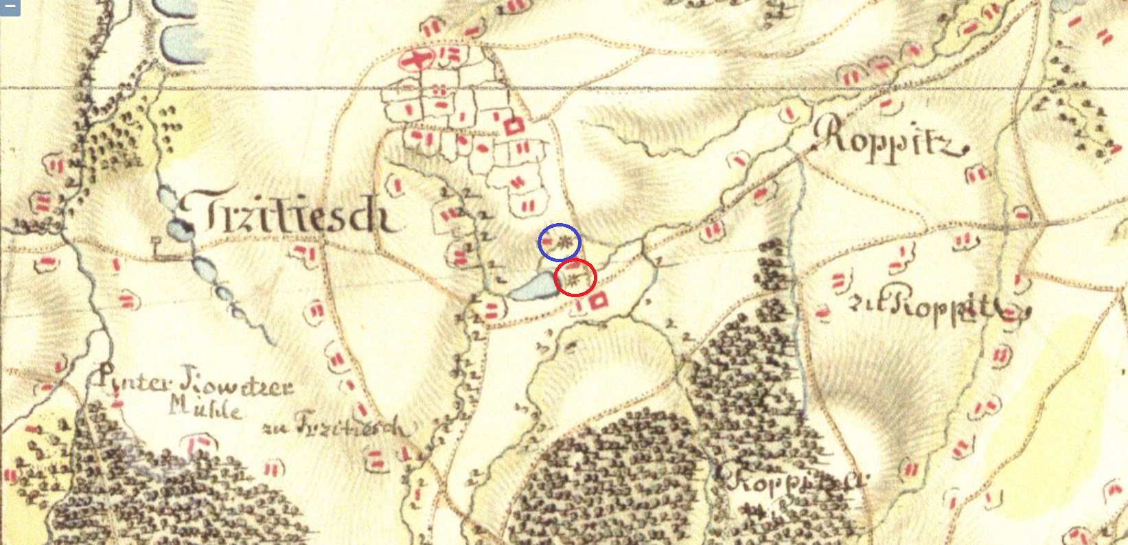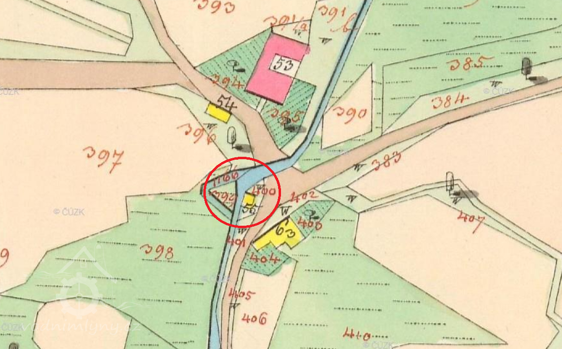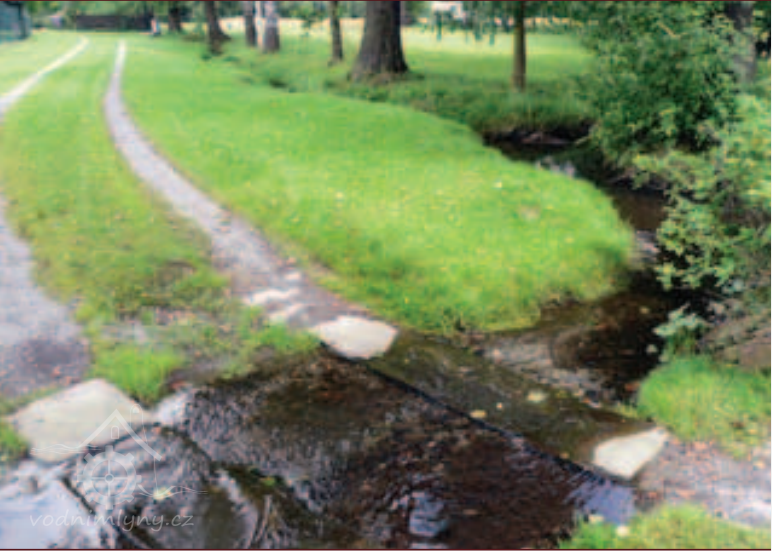 Nad mlýnem se náhon rozdvojoval a levé rameno sloužilo jako regulační, aby se pod mlýnkem zase spojilo.