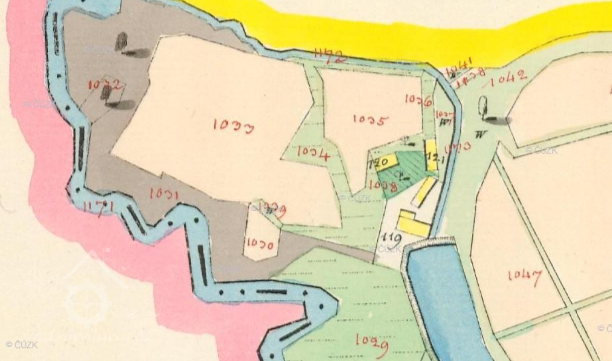 Na severozápadním břehu severního rybníka se nachází přestavěný areál bývalého mlýna. Vlastním mlýnem byla dnešní budova čp. 43 na parcele č. 895 p. Heleny Vavrošové.