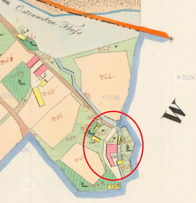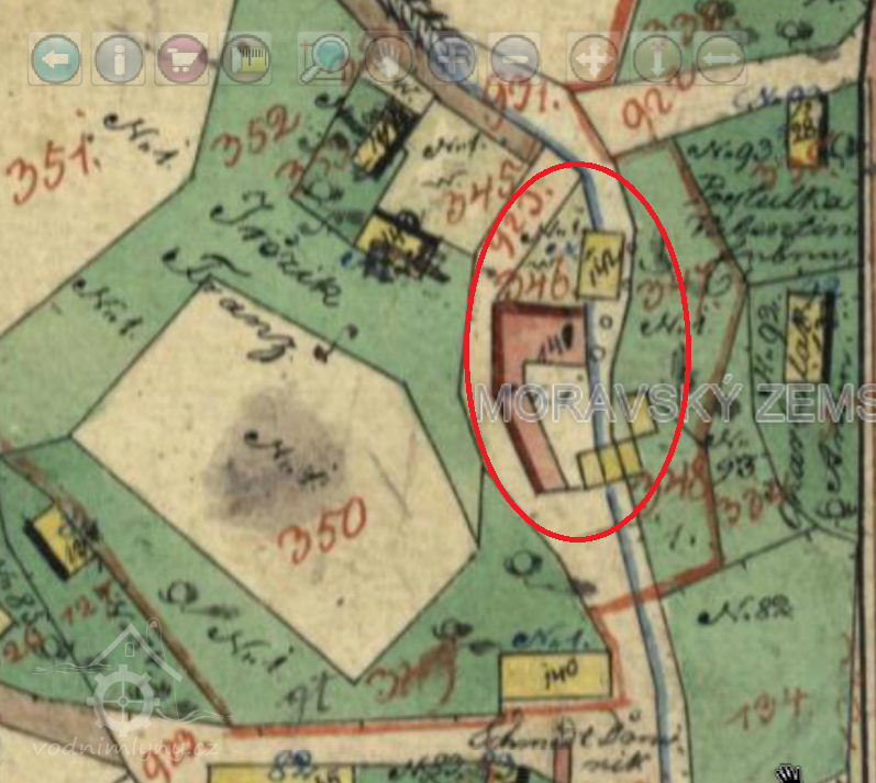 Starší mlýn, po roce 1892 přestavěný Aloisem Lembergerem na velkou textilní fabriku.