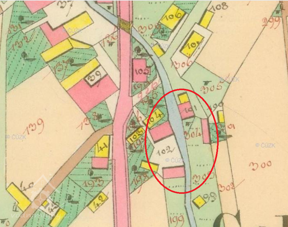 Šlo o mlýn o jednom kameni u Nového rybníka u Kolloredova s kontribučním číslem 47, kterému připadlo 30 měr polí po rozdrobení dvora sviadnovského.
