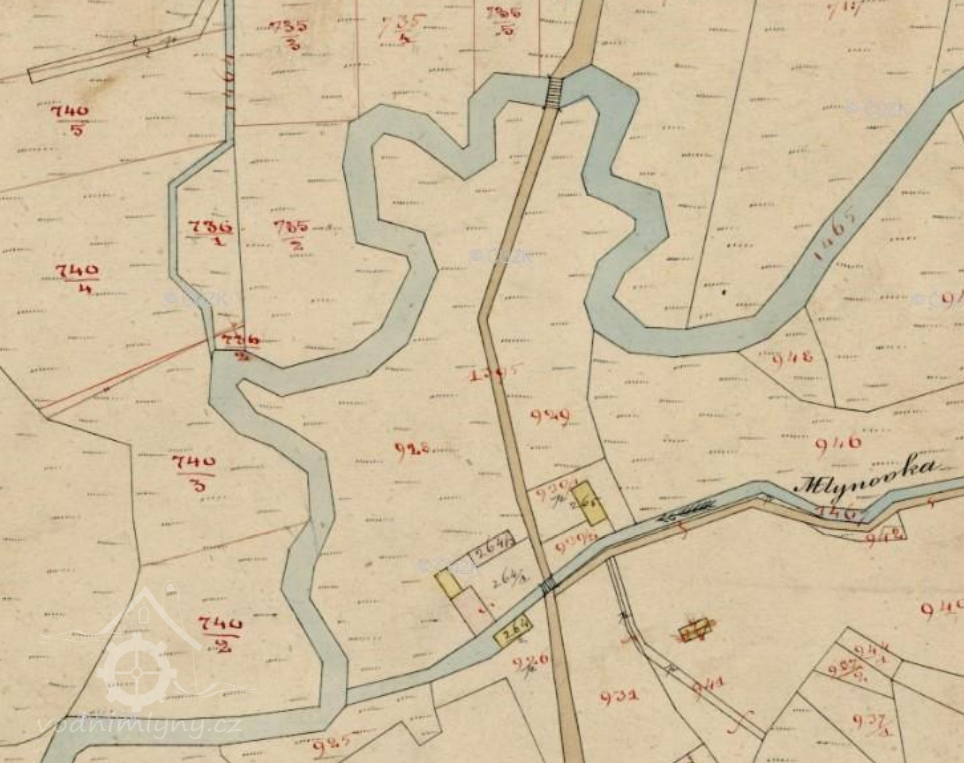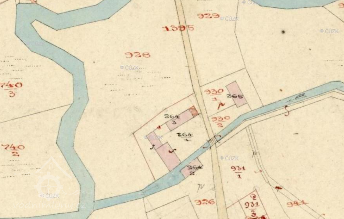 Popis1930: 1 kolo na svrchní vodu, hltnost 0,4 m3/s, spád 3,2 m, výkon 11,1 HP (8,21 kW)