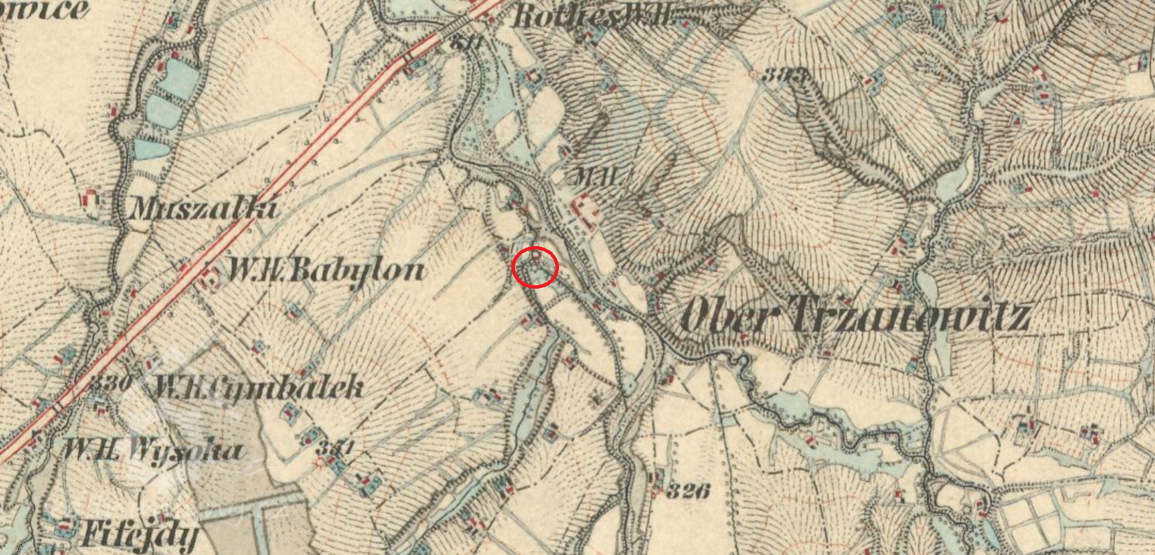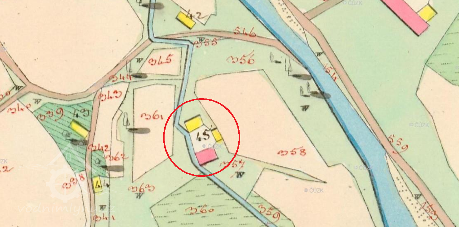 Dochoval se pouze nepatrný náznak bývalého vodního náhonu.