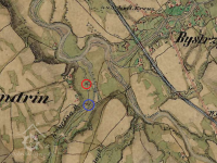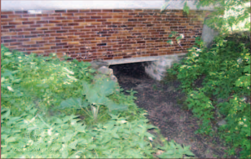 Zachován mohutný val na jehož koruně probíhal od jihu náhon (srovnán, vyschlý). Ten je před garáží prudce zakončen. Pod garáží zachována rýha náhonu, která v nezregulované podobě pokračuje dál k severu.