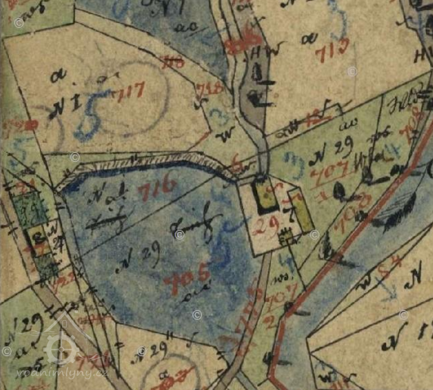 Mlýn mezi dvojicí rybníků, dnes zaniklých.