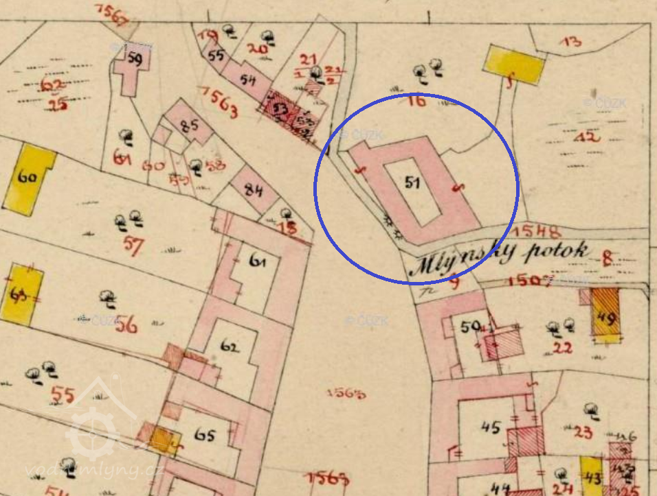 Popis1930: 1 kolo na svrchní vodu, hltnost 0,15 m3/s, spád 2,26 m, výkon 3 HP