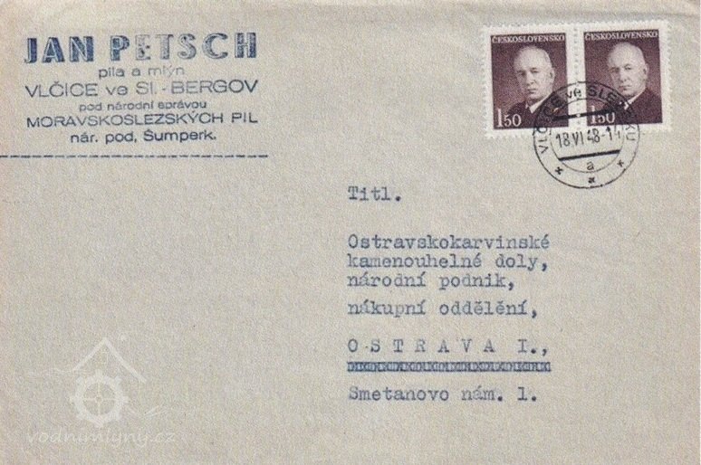 Hlavičková obálka s razítkem, 1948, © Soukromá sbírka, (Prvky na obrázku: Hlavičkový (firemní) papír)