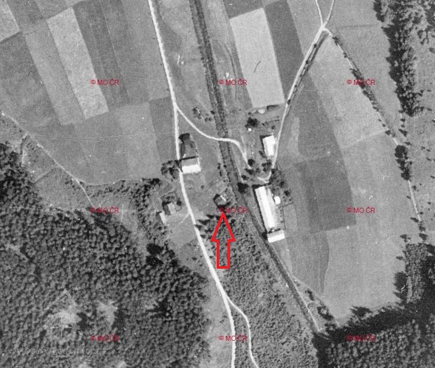 Letecký měřický snímek, výřez, 1955, © ags.cuzk.cz/archiv