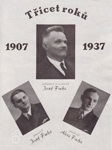 Josef Fuchs se svými syny při výročí založení firmy, 1937, © Štěrba-bike.cz