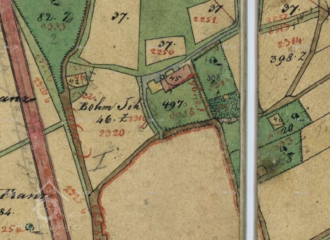 Projekce starých katastrálních map, výřez, 1836-1852, © ags.cuzk.cz/archiv