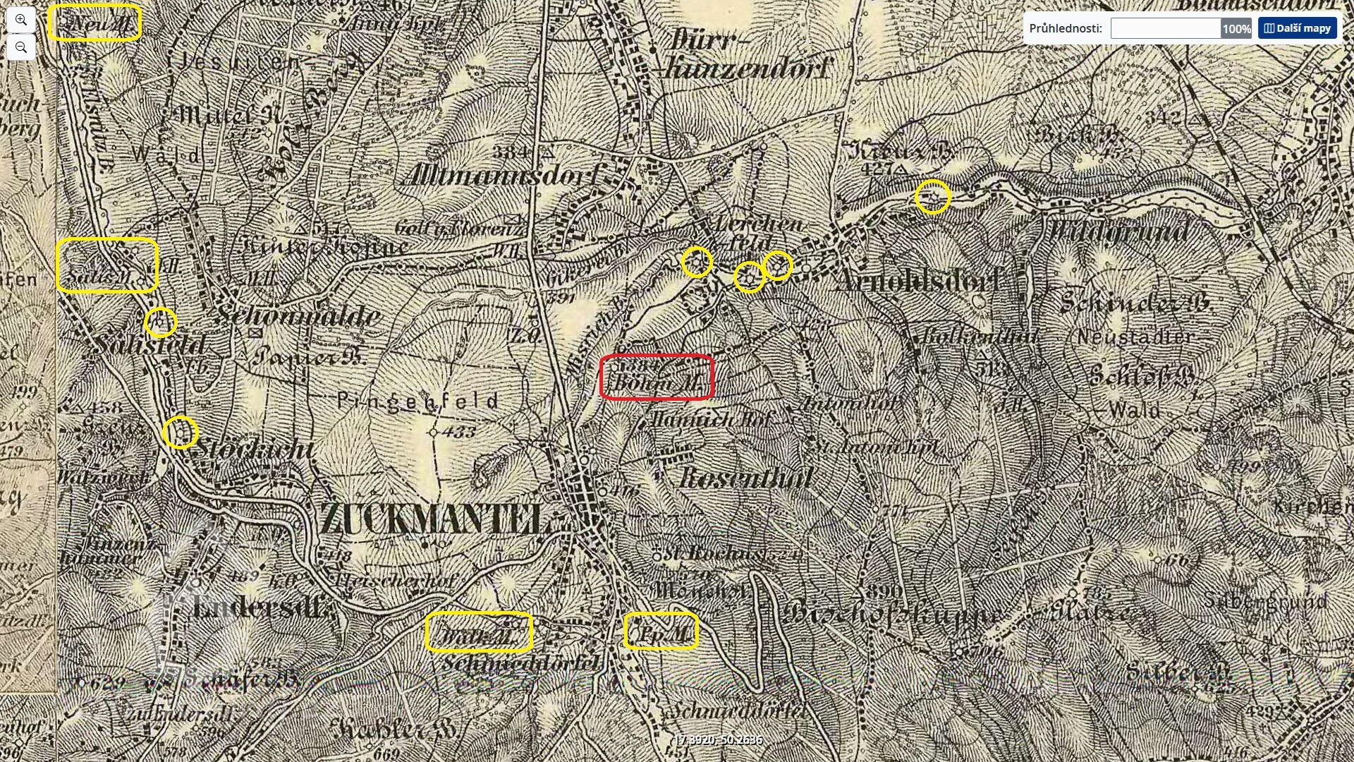 II. vojenské mapování, výřez, 1836-1852, © maps.arcanum.com