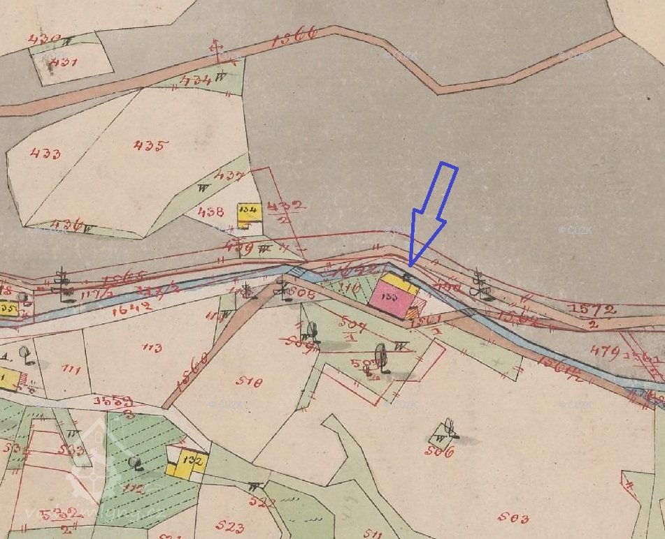Indikační skica, výřez, 1836, © ags.cuzk.cz/archiv