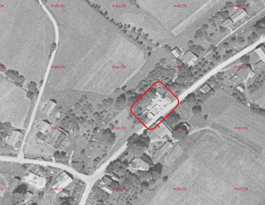 Letecký měřický snímek, výřez, 1958, © ags.cuzk.cz/archiv