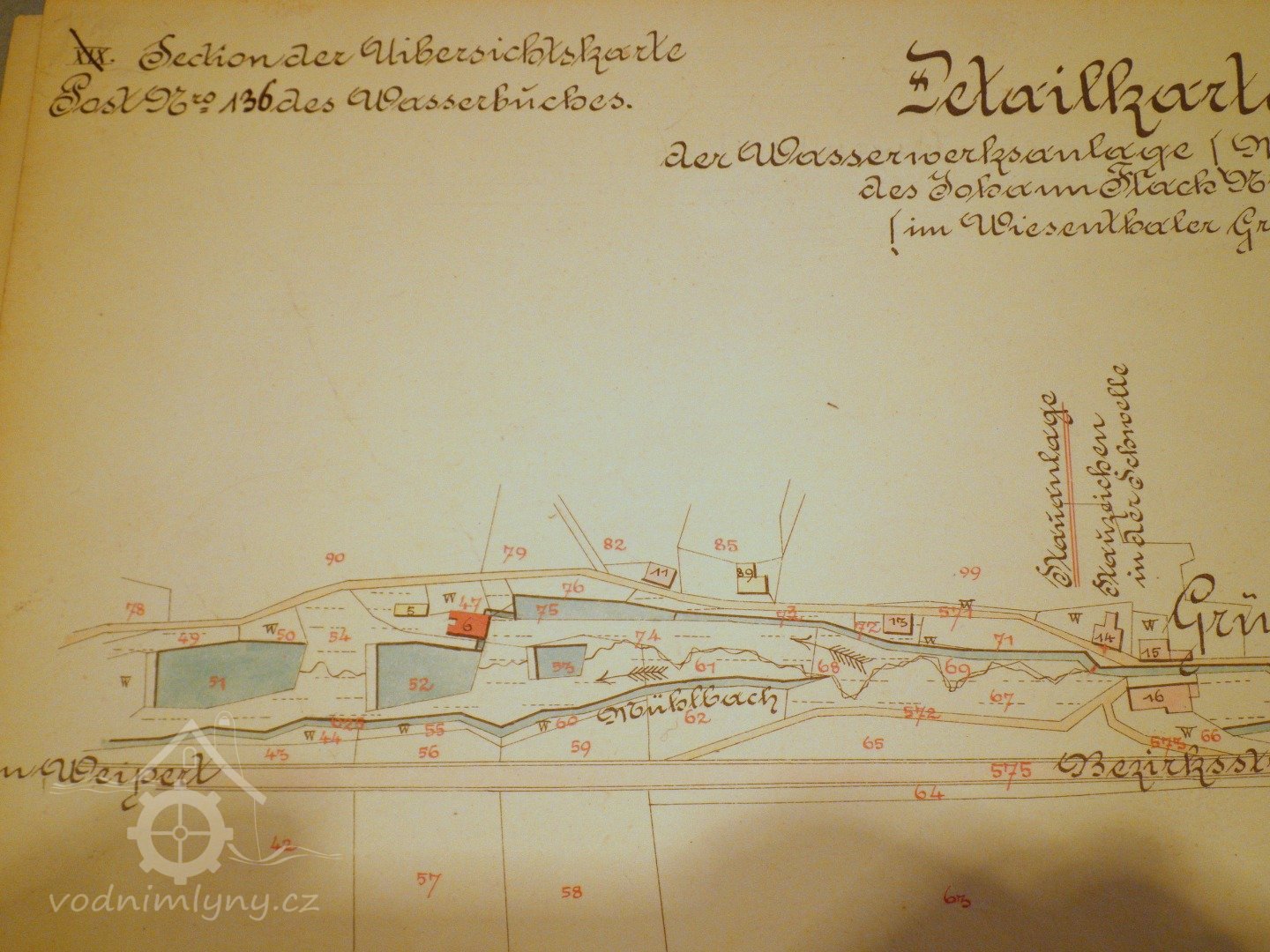 Nákres vodoprávní situace, 1878, © Vodní kniha