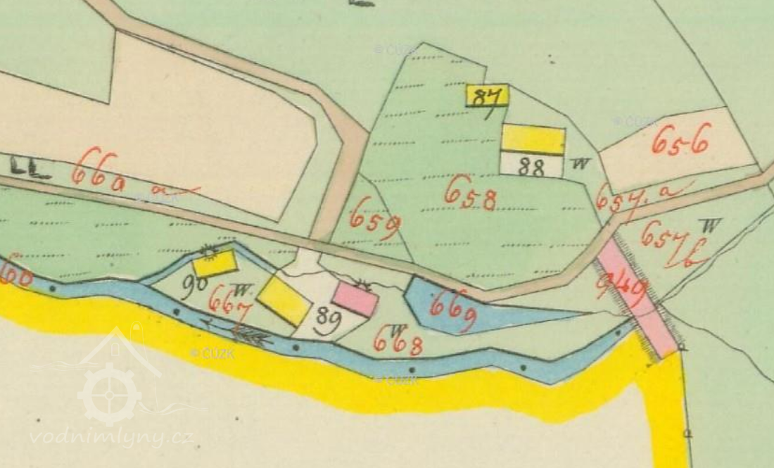Do roku 1918 se od mlýna po jarním tání plavilo palivové dříví do řeky Bystřice, kde bylo zachytáváno. K tomu účelu byla nad mlýnem vybudována nádrž.