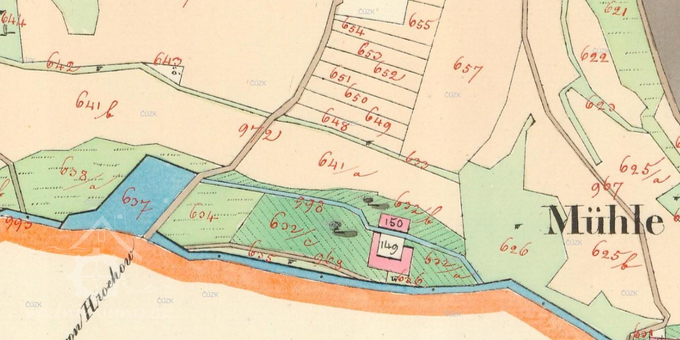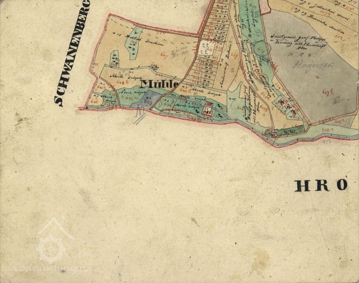 O tom, že v roce 1834 byl mlynářem Joseph Aberle svědčí tzv. indikační skica (MZA Brno), na které je uveden jako držitel mlýna a okolních pozemků, viz: