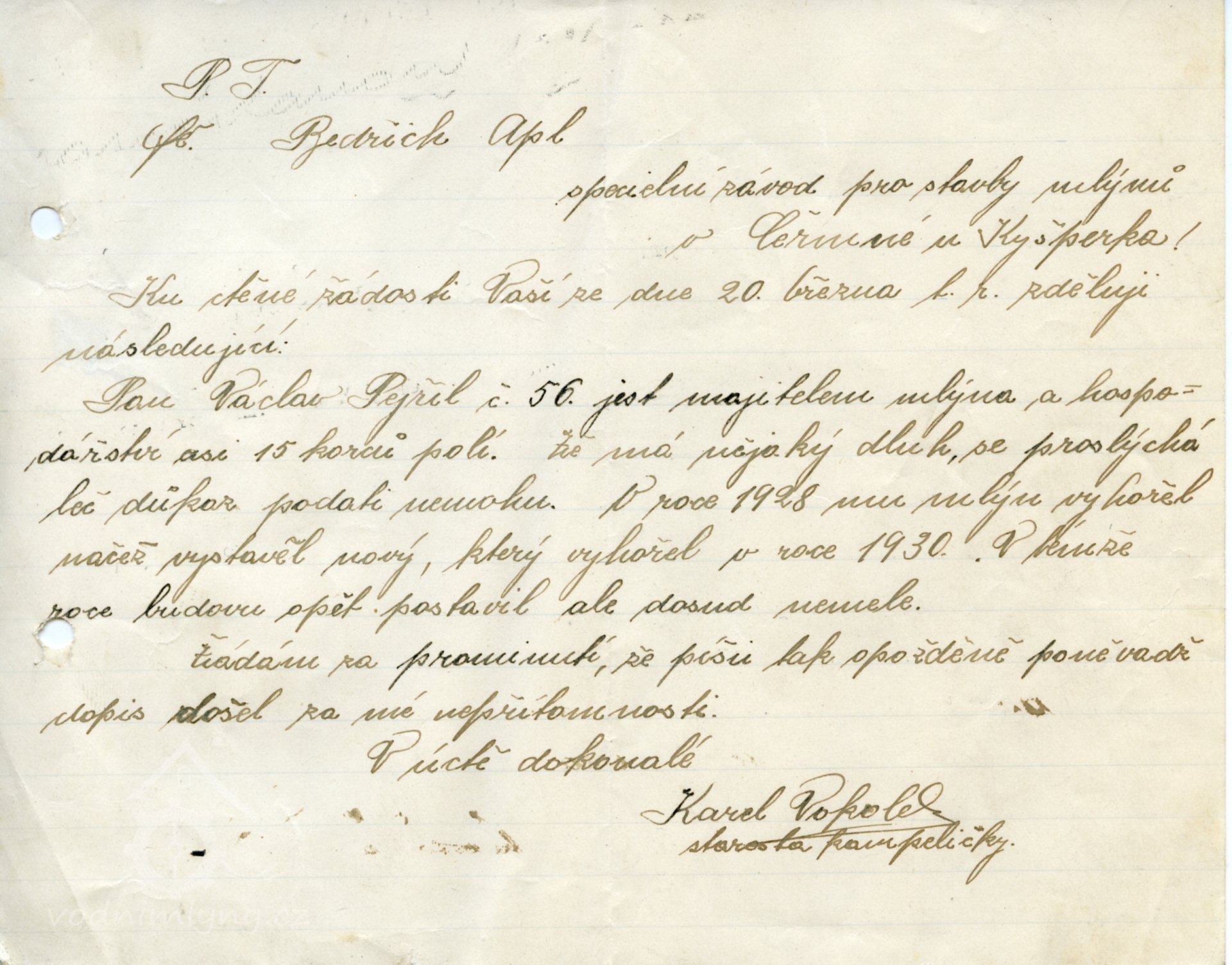 V roce 1930 byl mlynářem Václav Pejřil.