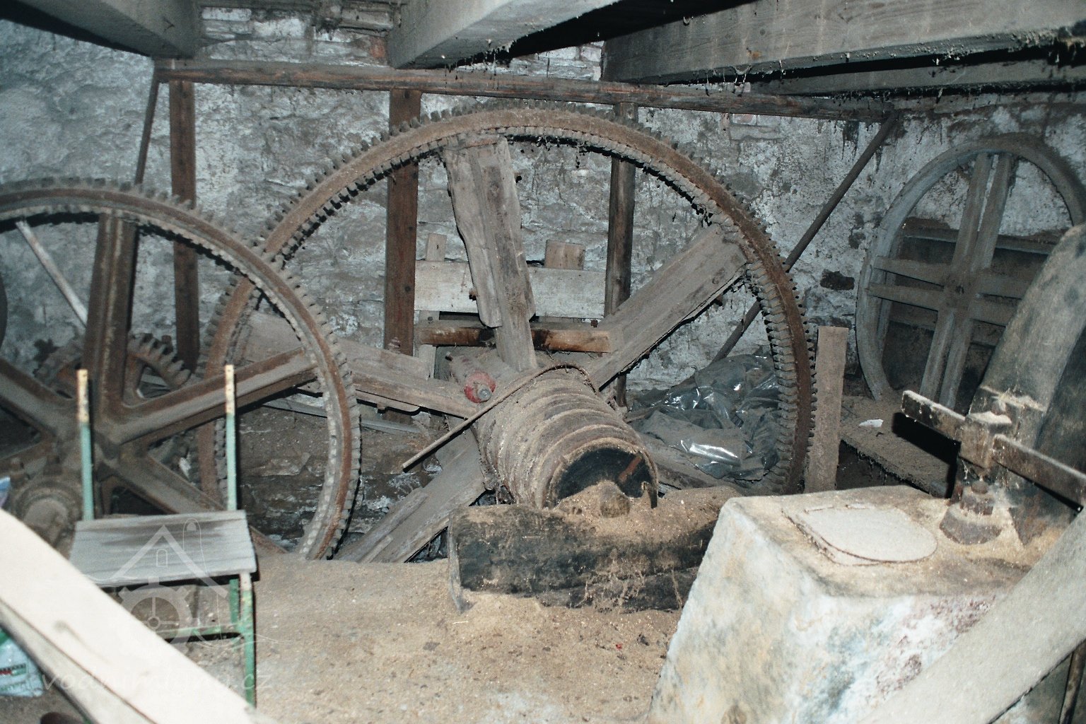 V podkolí zachováno kompletní převodové soukolí, které se stává ze dvou palečních převodových stupňů do rychla, dále pak třetím převodovým stupněm přes řemenice do rychla. Je zde i spodní excentr katru. Na prvním podlaží je katr k řezání klád s pojezdovými vozíky a kolejnicemi a také transmise uchycená u stropu, jenž poháněla osvětlovací dynamo, omítací pilu, pásovou pilu a brusku.