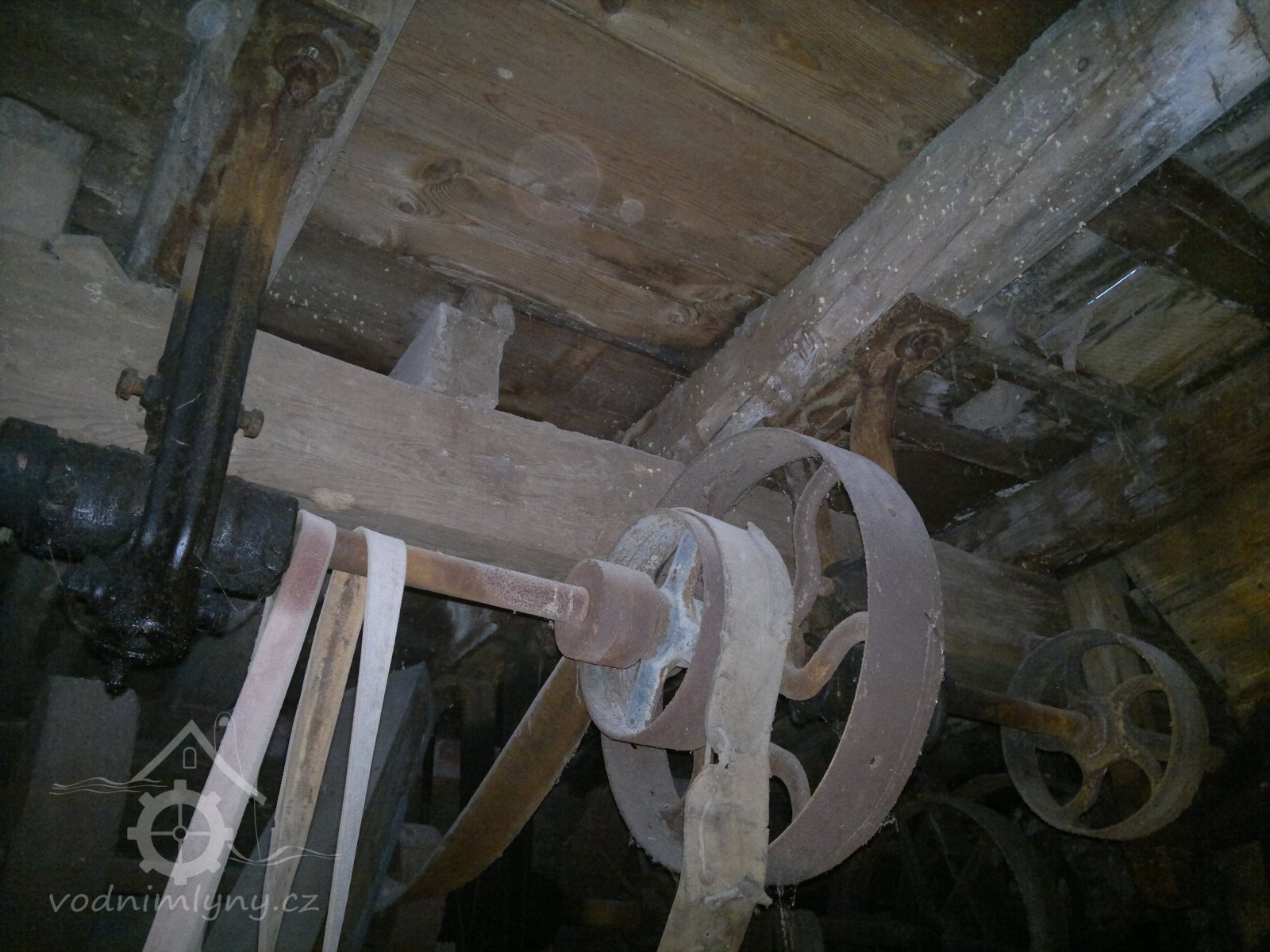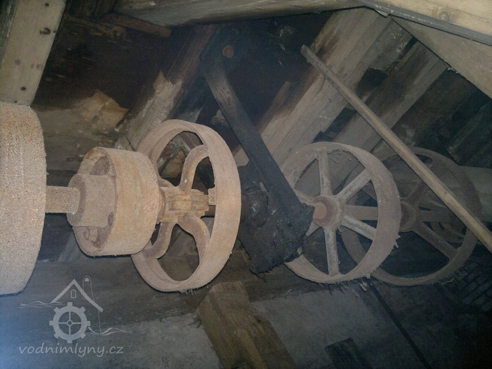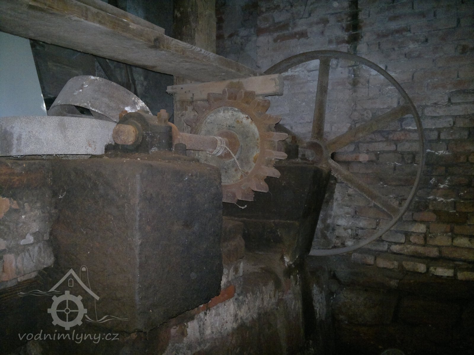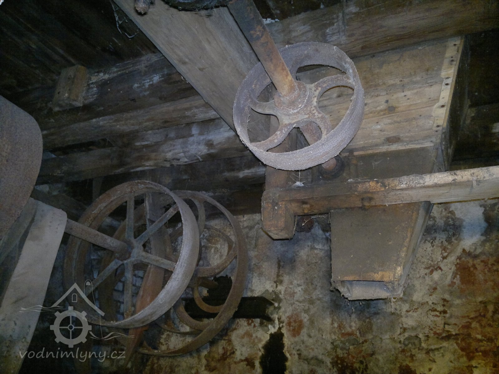 Ve mlýně dochováno převodové soukolí bez palečního kola i přes to, že zde byla později instalována turbina. Původně dřevěná hřídel od vodního kola procházela hřídelovým otvorem do podkolí, na hřídeli bylo větší dřevěné paleční kolo s bočními zuby (palci). Palce zapadaly do litinového pastorku na hřídeli předlohové s velkou řemenicí, hřídel je usazena na ložiskách na velkých kamených blocích (dochováno). Řemenice přes řemen otáčela hlavní hnací transmisí usazenou v ložiskových věšácích u stropu. Ta rozváděla energii na mlýnské stroje a na transmise do vyšších pater... Je zde i menši druhá transmise rozvodná. Později sem byla instalována Francisova turbina od firmy Union - České Budějovice (konec 30. let 20. stol.). Ta pracovala souběžně s vodním kolem a později bylo vodní kolo demontováno a pohon mlýna zajištovala pouze turbina, napojená na hlavní transmisi přes předlohovou hřídel. Turbina je usazena v kašně postavené v místě původní lednice vodních kol. Byla plánovaná instalace druhé turbiny, avšak k tomu již nedošlo. Ve mlýnici se nachází pouze fragmenty strojního zařízení, tj. válcové mlecí stolice od fa J. Prokop a synové - Pardubice, fa Koma akc. železárny - Komárov, šnekové dopravníky, transmise, řemenice, části filtrů a kapsových dopravníků, míchačka moučná, transmise podstřešní, trieur - koukolník, torza vysévačů rovinných a hranolových a také několik motorů. Kompletně dochována periodická loupačka a šrotovník od fa Union - České Budějovice. Toto zařízení bylo převážně z konce 30. let 20. stol., kde nahradilo starší strojní zařízení z přelomu 19. a 20. stol.