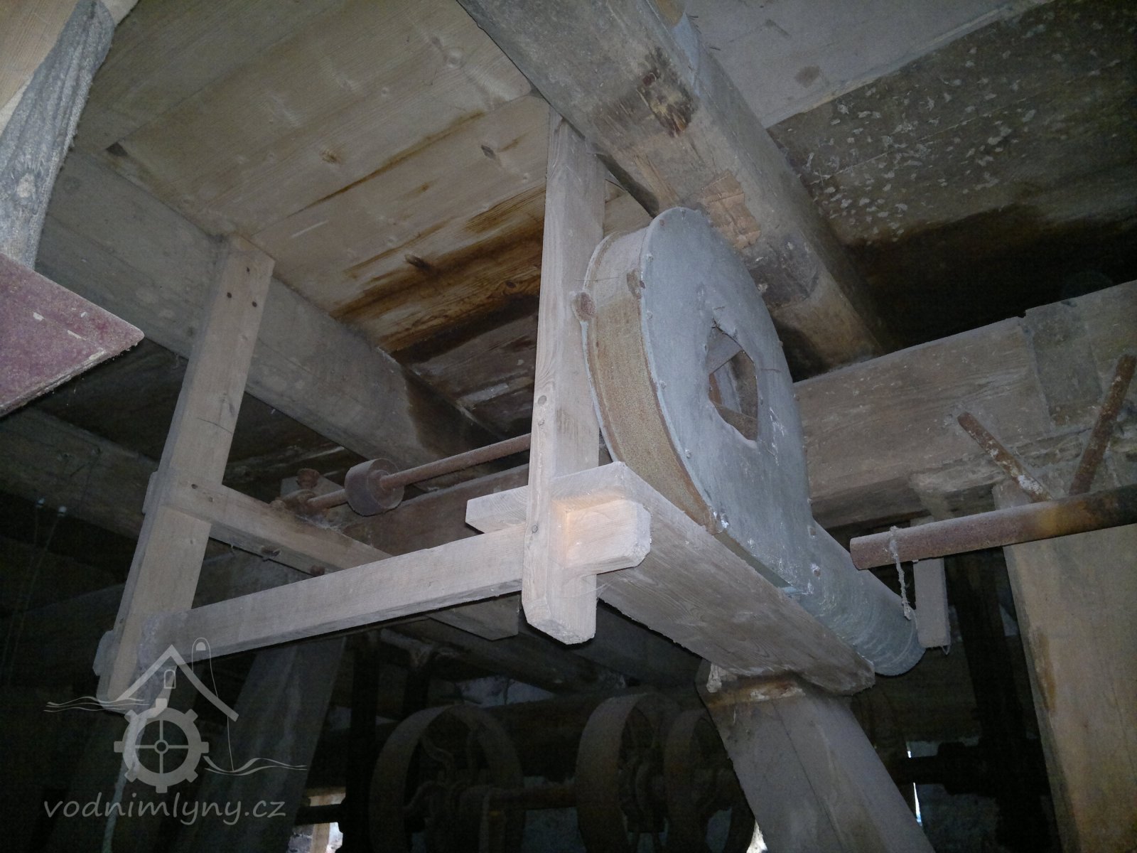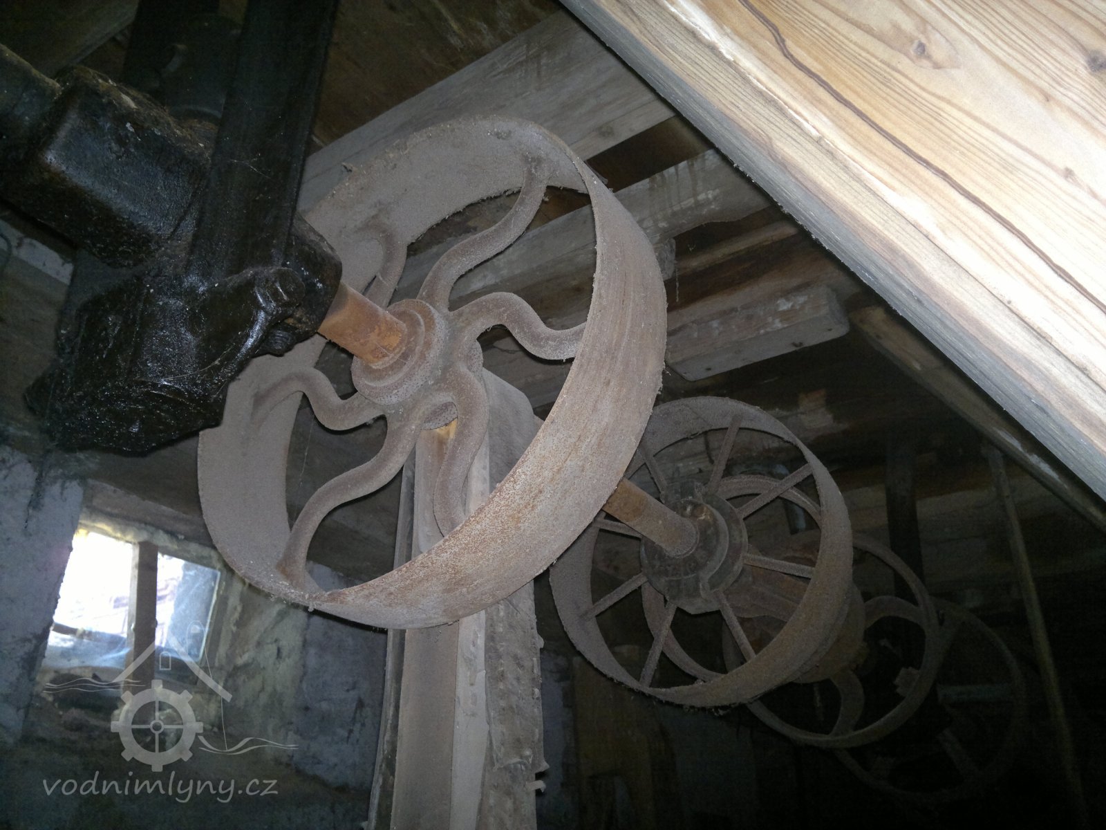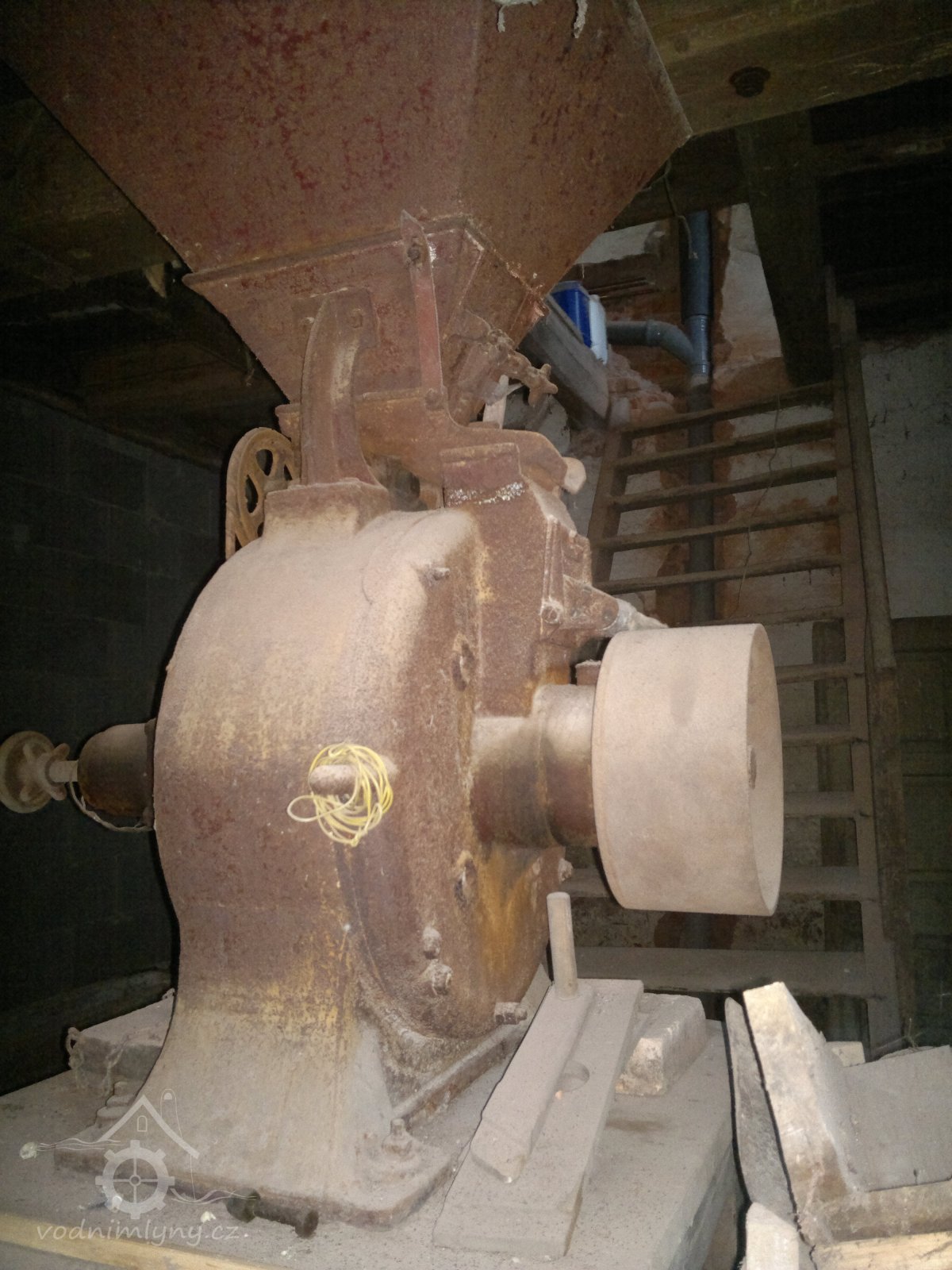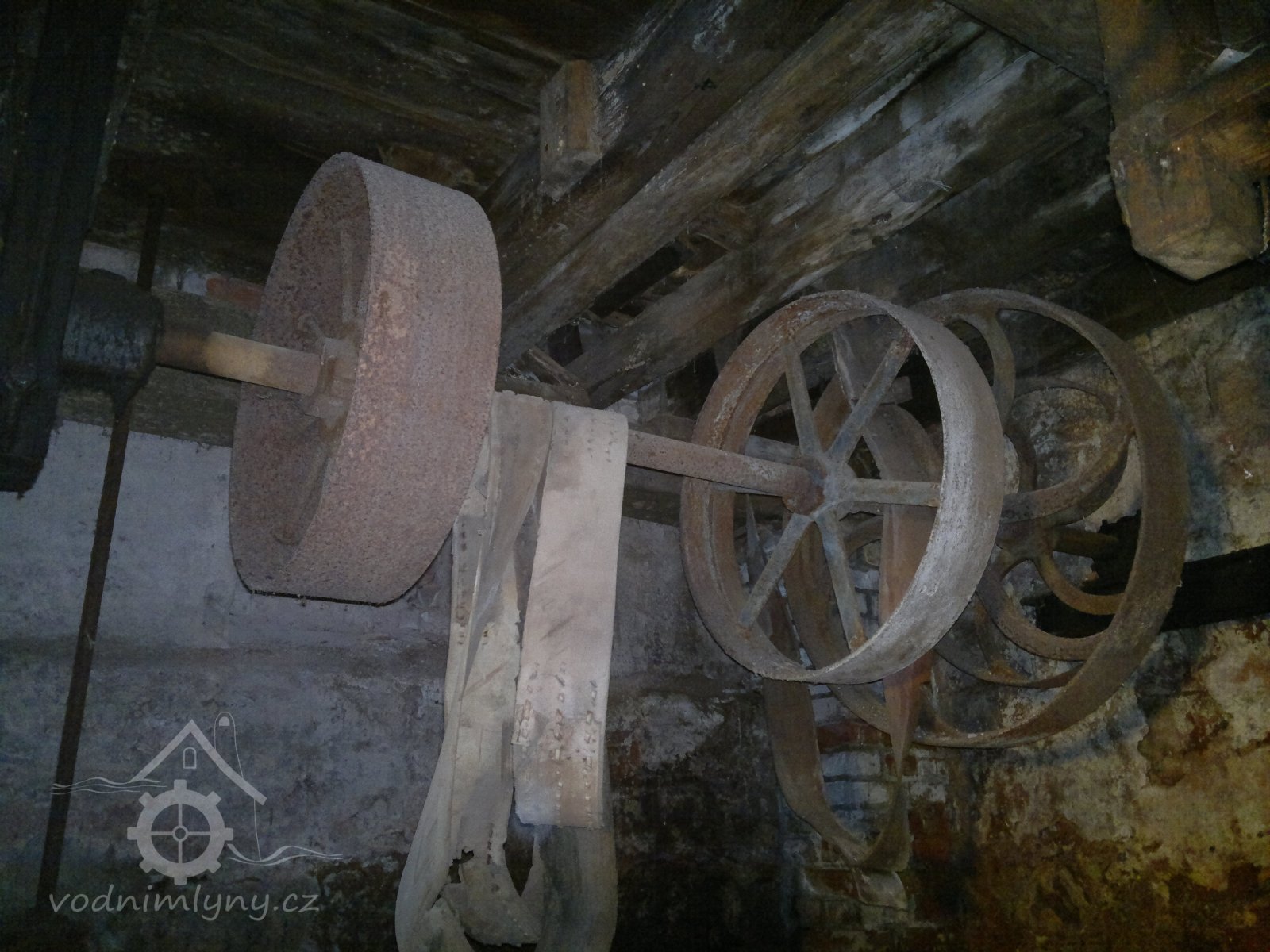 Ve mlýně dochováno převodové soukolí bez palečního kola i přes to, že zde byla později instalována turbina. Původně dřevěná hřídel od vodního kola procházela hřídelovým otvorem do podkolí, na hřídeli bylo větší dřevěné paleční kolo s bočními zuby (palci). Palce zapadaly do litinového pastorku na hřídeli předlohové s velkou řemenicí, hřídel je usazena na ložiskách na velkých kamených blocích (dochováno). Řemenice přes řemen otáčela hlavní hnací transmisí usazenou v ložiskových věšácích u stropu. Ta rozváděla energii na mlýnské stroje a na transmise do vyšších pater... Je zde i menši druhá transmise rozvodná. Později sem byla instalována Francisova turbina od firmy Union - České Budějovice (konec 30. let 20. stol.). Ta pracovala souběžně s vodním kolem a později bylo vodní kolo demontováno a pohon mlýna zajištovala pouze turbina, napojená na hlavní transmisi přes předlohovou hřídel. Turbina je usazena v kašně postavené v místě původní lednice vodních kol. Byla plánovaná instalace druhé turbiny, avšak k tomu již nedošlo. Ve mlýnici se nachází pouze fragmenty strojního zařízení, tj. válcové mlecí stolice od fa J. Prokop a synové - Pardubice, fa Koma akc. železárny - Komárov, šnekové dopravníky, transmise, řemenice, části filtrů a kapsových dopravníků, míchačka moučná, transmise podstřešní, trieur - koukolník, torza vysévačů rovinných a hranolových a také několik motorů. Kompletně dochována periodická loupačka a šrotovník od fa Union - České Budějovice. Toto zařízení bylo převážně z konce 30. let 20. stol., kde nahradilo starší strojní zařízení z přelomu 19. a 20. stol.